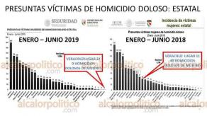 Hace un año, en el primer semestre de 2018, durante la administración estatal de Miguel Ángel Yunes Linares, la Fiscalía General del Estado había informado al Secretariado Ejecutivo del Sistema Nacional de Seguridad Pública (SESNSP) de la Secretaría de Gobernación, que en Veracruz se habían cometido de enero a junio de ese año, 40 homicidios dolosos y 36 feminicidios, ubicando a la entidad veracruzana en segundo lugar en este último delito y en el décimo primero en el primer mencionado.