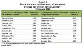 Del lado contrario, San Andrés Tuxtla y Córdoba quedaron entre las ciudades “más baratas” o con una inflación menor a la nacional, con un 0.22 y un 0.25 por ciento.