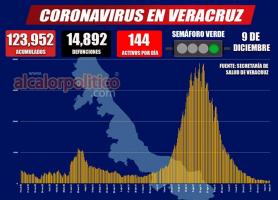 Después de practicar 274 mil 878 estudios, la Secretaría de Salud (SS) ha confirmado 123 mil 952 (+22 nuevos) casos de COVID-19 en Veracruz, de los cuales 144 se consideran activos y 181 sospechosos actuales.