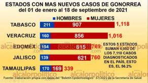 Es importante destacar que en el Estado de Veracruz, de los mil 16 nuevos casos de personas con gonorrea: