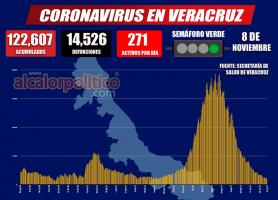 La Secretaría de Salud (SS) confirma 122 mil 607 (+23 nuevos) casos de COVID-19 acumulados en Veracruz, de 262 mil 912 eventos analizados.