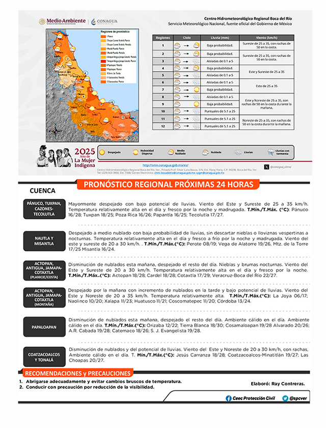 Durante este fin de semana, se prevén mejores condiciones meteorológicas y temperaturas gradualmente mas altas debido a la persistencia de viento del sur y sureste en el litoral veracruzano.