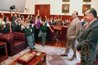 Luego, los estudiantes y sus profesores, acompañados por la presidenta del Sistema Estatal para el Desarrollo Integral de la Familia, Karime Macías de Duarte, se trasladaron al Palacio Legislativo.