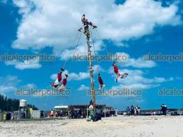 Con un espectáculo tradicional del Totonacapan que no esperaban los turistas, los Voladores de Papantla sorprendieron a los visitantes de las playas de Tamiahua.