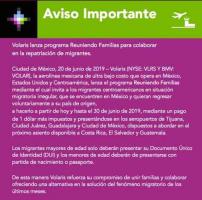 "De esta manera Volaris refuerza su compromiso de unir familias y colaborar ofreciendo una alternativa en la solución del fenómeno migratorio de los últimos meses", indicó la aerolínea, en un comunicado.
