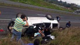 Brigadas de atención a accidentes en autopistas y carreteras se trasladaron al kilómetro 272, con dirección a Veracruz, para brindar los primeros auxilios al conductor de la camioneta y uno de los dos acompañantes.