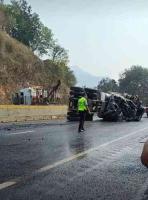 Dos personas lesionadas y la interrupción de la circulación vehicular en la autopista Puebla-Veracruz, a la altura de la curva de Nogales, fue el saldo del choque de 2 vehículos y la volcadura de un tráiler que terminó incendiado.