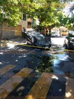 Al llegar a la esquina, un vehículo se atravesó y debido al presunto exceso de velocidad con que iban, el conductor del Volkswagen Vento frenó bruscamente y perdió el control del volante hasta volcar y estrellarse contra dos autos estacionados.