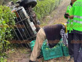 Volcó camioneta cargada con limones, en carretera Coatepec-Tuzamapan
