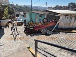 Volcó camioneta con material de construcción en colonia Benito Juárez, en Xalapa