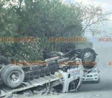 Volcó camioneta con materiales para la construcción en carretera Xalapa-Alto Lucero