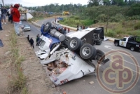 El accidente sucedió al mediodía, cuando el tráiler marca Volvo con placas de circulación, 322-AH-6, cargado con 23 toneladas de leche