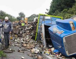 Cierre parcial de la circulación vehicular y daños materiales por varios miles de pesos dejó de saldo la volcadura de un tráiler cargado con 16 toneladas de chatarra, en la autopista 150-D, del tramo Cumbres de Maltrata-Ciudad Mendoza.