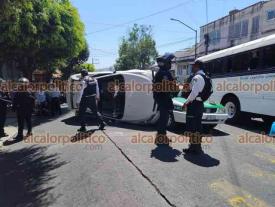 El auto era conducido por una mujer quien al llegar en la intersección con las calles Emilio Carranza y 5 de Febrero realizó una mala maniobra que le hizo perder el control del volante, lo que ocasionó que chocara contra el costado derecho del taxi Nissan número XL-1852, lo que provocó que volcara.