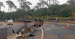 Un vehículo que se desplazaba sobre el libramiento Xalapa-Perote tras chocar con los muros divisorios de la autopista termino volcado, resultando sus ocupantes levemente lesionados.