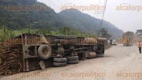 Un camión cargado con más de 25 toneladas quedó volcado sobre la carretera Tezonapa-Motzorongo, cuando se trasladaba del municipio de Tierra Blanca al ingenio Central Motzorongo.
