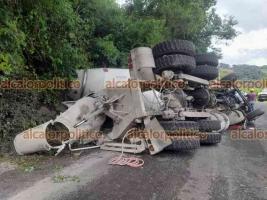 Un camión revolvedor volcó la tarde de este miércoles cuando circulaba sobre la barranca de Coscomatepec, dejando al conductor prensado y obstruyendo la circulación vehicular.