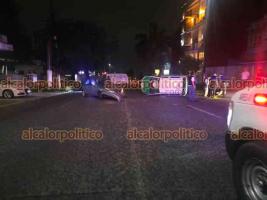 La noche de este viernes un taxi terminó volcado sobre su costado minutos antes de la medianoche, luego de colisionar con un automóvil particular en la avenida Manuel Ávila Camacho, esquina con la calle Tuxpan, en el Fraccionamiento Veracruz.