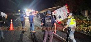 La noche de este sábado se registró un accidente en la autopista Xalapa–Perote, a la altura de la comunidad de El Fresno, municipio de Tlacolulan, donde un tráiler cargado con costales de sal terminó volcado a un costado de la vía.
