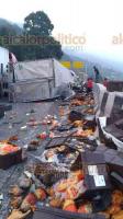 Más de 20 toneladas de pollo se perdieron, tras la volcadura de un tractocamión acoplado a un contenedor tipo caja seca, ocurrido sobre la autopista Puebla-Orizaba, del tramo conocido como Cumbres de Maltrata ocurrido la tarde de este lunes.