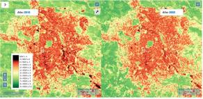 En el caso de la avenida Lázaro Cárdenas, el análisis del INEGI exhibe que en 1989 subsistían porciones con índices de 0.6 a 0.5, es decir, abundantes en vegetación a la orilla de la vialidad y con más énfasis en las áreas verdes del CBTIS 13.