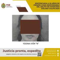 Un juez dictó sentencia condenatoria de 20 años de prisión en contra de Yesenia Ivón “N” como responsable del delito de homicidio doloso calificado, cometido en agravio de integrantes de su propia familia en un terreno que compartían.