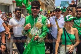 El color distintivo con el que entra a la contienda es el verde y esta tarde realizó su rumbata en la que fue acompañado por comparsas, bastoneras y sobre todo asistieron varios ciudadanos que le pidieron fotos en su recorrido.