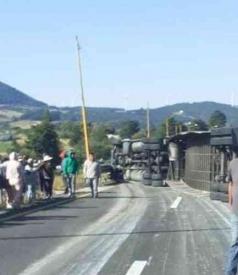 Se robaron toneladas de pavos al volcar tráiler en Esperanza, Puebla
